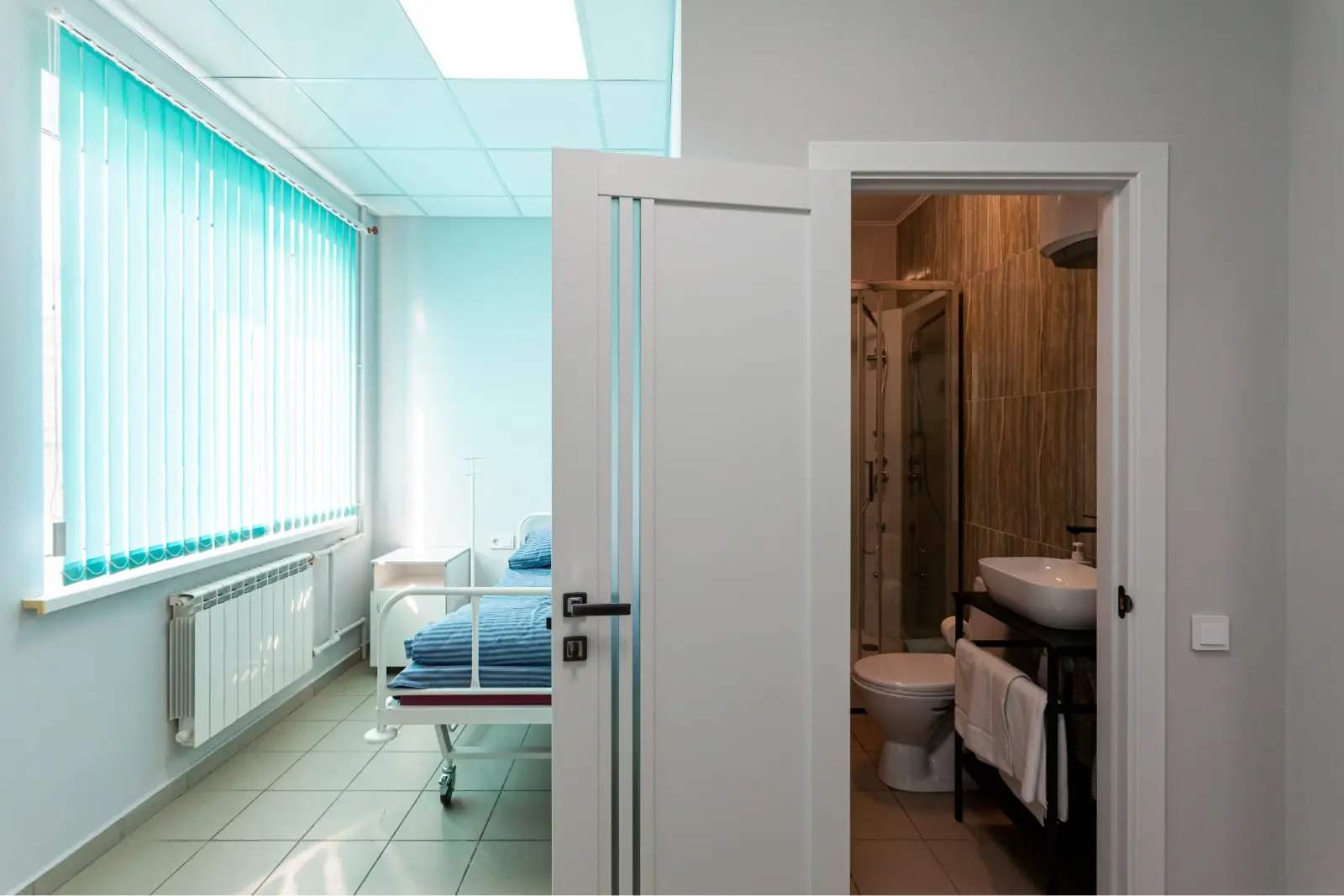 Пациенты находятся в условиях психологического комфорта, могут отдохнуть, выспаться, восстановиться. В палатах есть санузлы, кнопка вызова персонала и качественная мебель, предоставляется сбалансированное питание.
